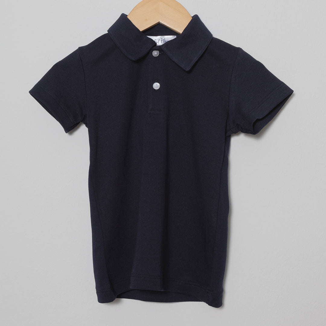 - White and navy blue polo shirts